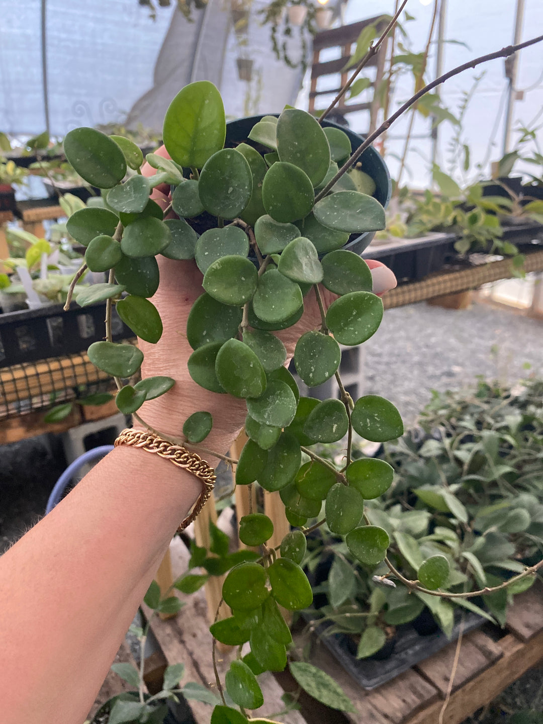 This tropical indoor plant, often called a “Wax plant” due to its thick waxy leaves, is a classic because it lives forever, grows to be enormous, and creates beautiful fragrant flower clusters.