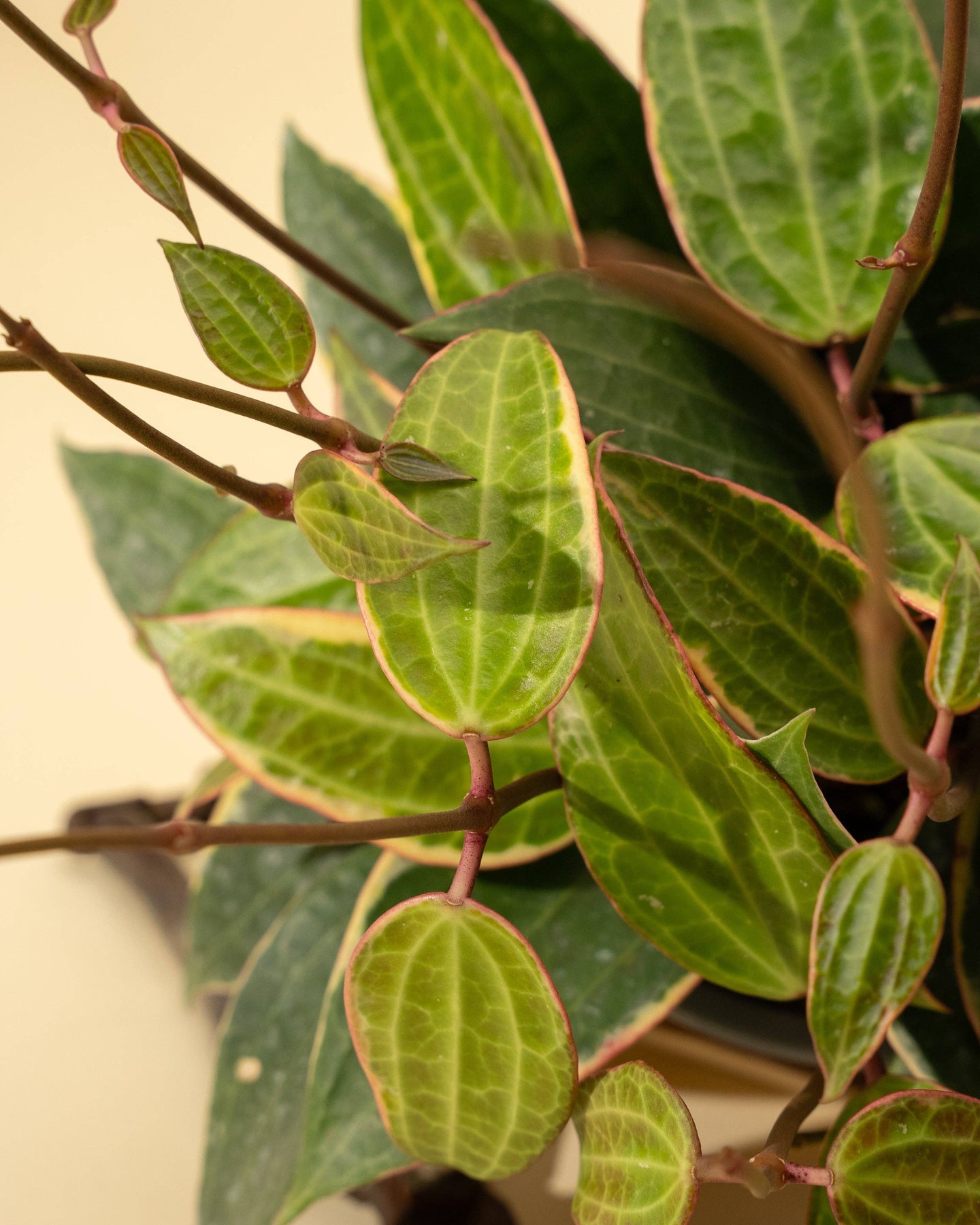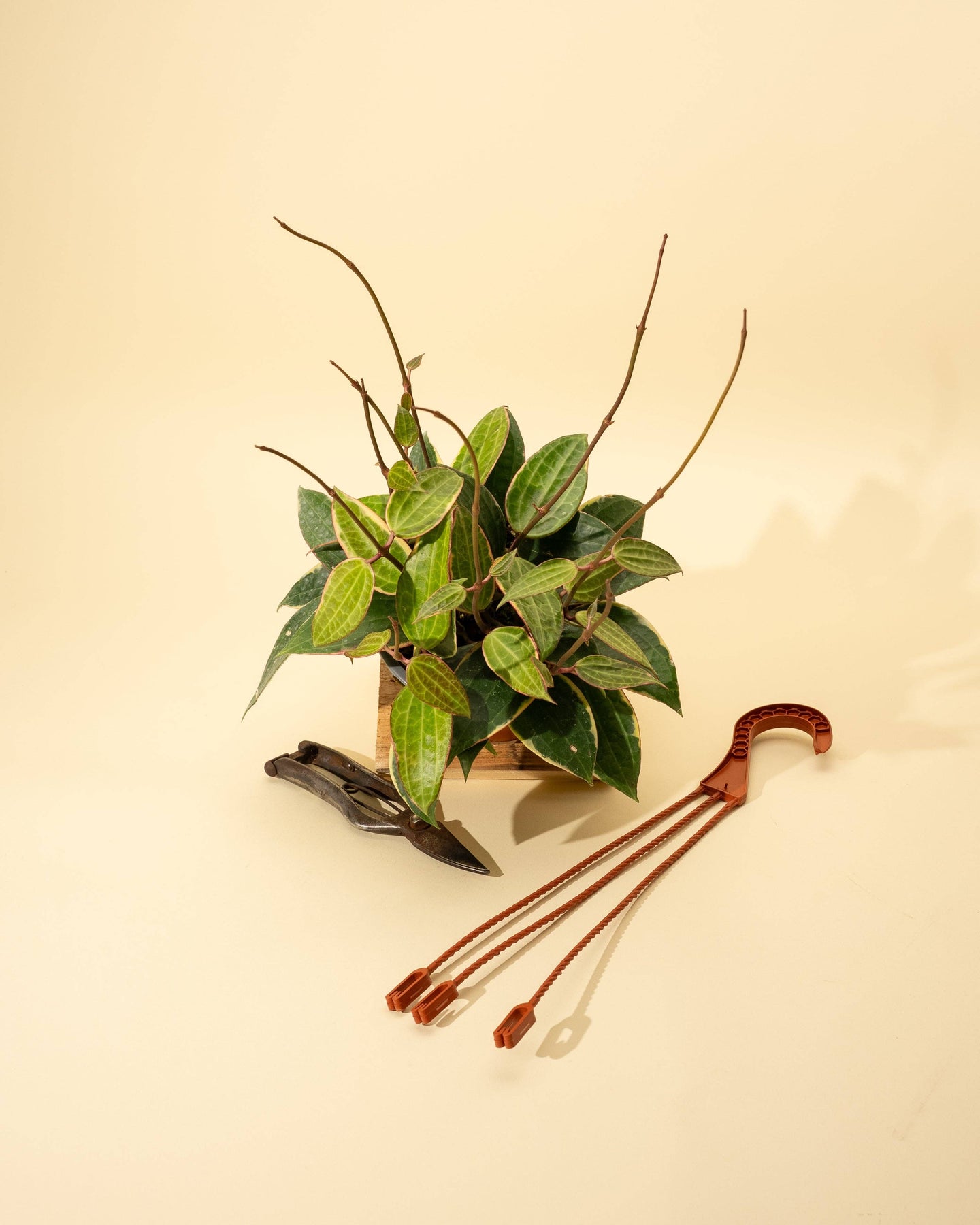The Variegated Hoya 'Macrophylla' is known for its thick, textured leaves with creamy margins that sometimes blush pink in bright light. Each leaf is broad and veined, giving it a distinct look compared to other trailing hoyas. It’s a slow and steady grower that’s great in a hanging pot or climbing support, and once mature, it can reward you with clusters of waxy flowers. * Light: Prefers bright, indirect light. Can tolerate some direct sunlight, but too much can cause leaf burn. * Water: Water when the top inch of soil is dry. Allow soil to dry out between waterings to avoid root rot. * Pet-Friendly: Non-toxic to pets. * Humidity: Thrives in moderate to high humidity but can tolerate normal indoor conditions. * Care Level: Low-maintenance; a great choice for beginners or seasoned plant lovers. Just ensure it's not overwatered and gets enough light. Note: Images are a general representation of size and color. Variegation will vary.